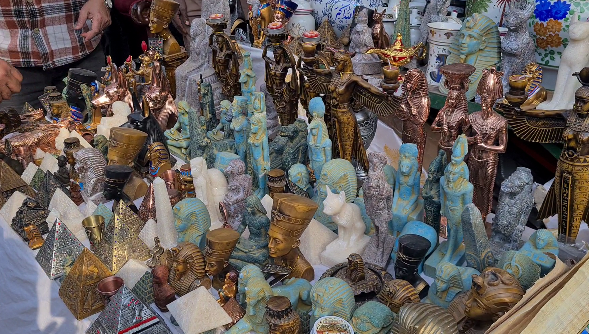 وقد صُنعت هذه القطع من الحجر والنحاس والبرونز، لتعكس إرثًا حضاريًا يمتد لآلاف السنين، فيما أضفى المزج بين اللونين الأزرق والذهبي طابعًا جماليًا مميزًا على المنحوتات. كما تستقطب المجسمات التي تجسد الأهرامات وأبو الهول والرموز المصرية القديمة اهتمام الزائرين لما تحمله من دلالات تاريخية وثقافية.