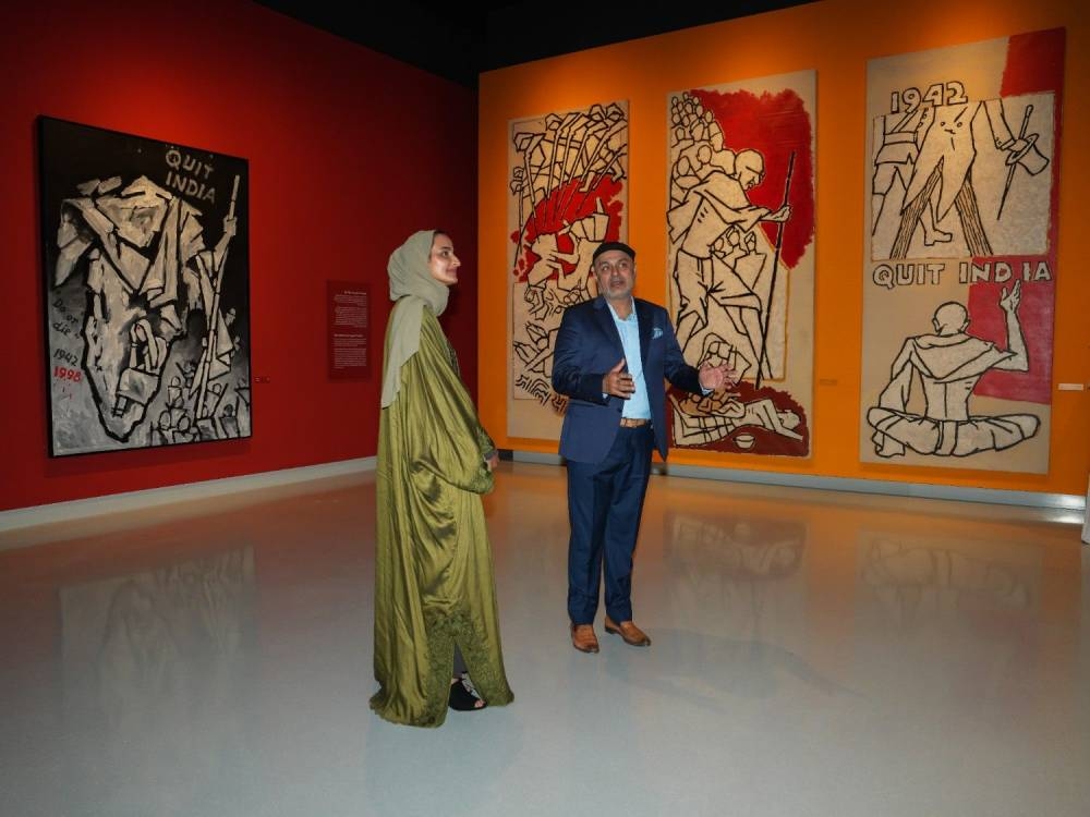 وعقب الافتتاح، بدأت صاحبة السمو جولتها في المتحف، بما في ذلك صالات العرض التي تستعرض المراحل المختلفة من مسيرة الفنان الإبداعية، وترصد تناوله للإيمان والفلسفة عبر أعماله لتكشف عن سعيه الدائم لالتماس الوحدة في خضم التنوع، وارتباطه بجذوره اليمنية وتأثره بالحضارة العربية.