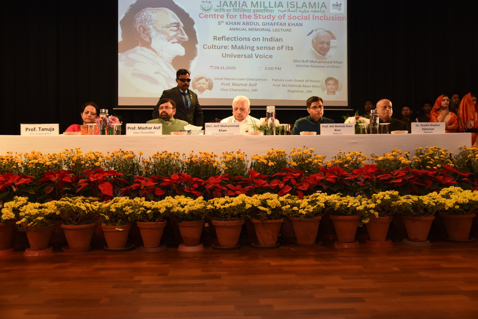 ألقى عارف محمد خان، حاكم ولاية بيهار، يوم الأربعاء، المحاضرة التذكارية السنوية الخامسة لخان عبد الغفار خان بعنوان: "تأملات في الثقافة الهندية: فهم صوتها العالمي"، التي نظمها مركز دراسة الاندماج الاجتماعي بالجامعة الملية الإسلامية في نيودلهي، بمشاركة عدد كبير من أعضاء هيئة التدريس والمسؤولين والطلبة في الجامعة.
