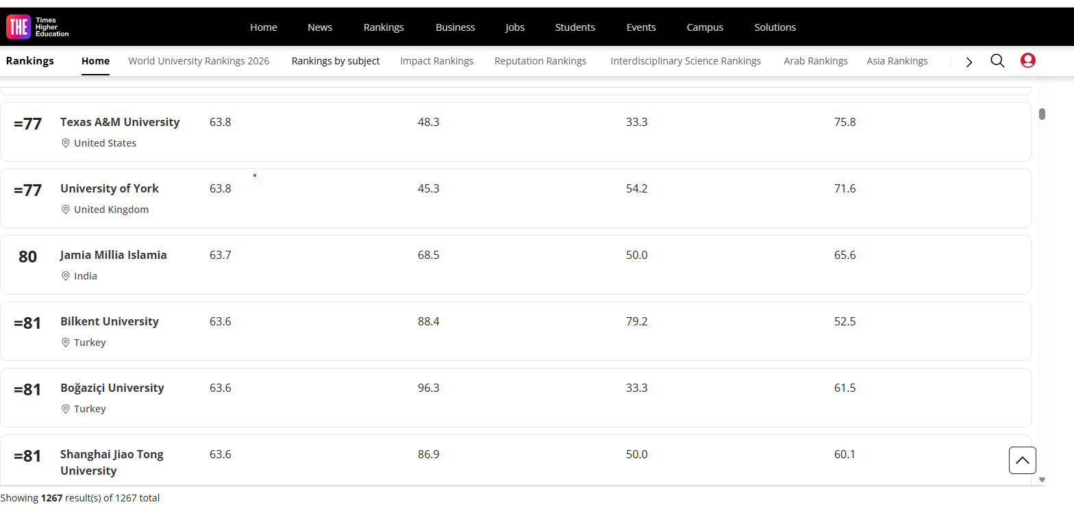 حققت الجامعة الملية الإسلامية إنجازًا أكاديميًا مهمًا بعد تقدمها من المرتبة 103 إلى المرتبة 80 عالميًا في تصنيف Times Higher Education، للعلوم البينية لعام 2026م، بحسب النتائج المعلنة اليوم.