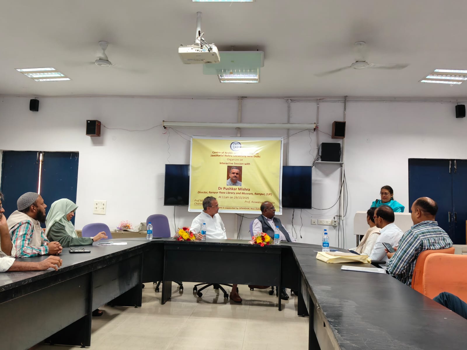 استقبل مركز الدراسات العربية والإفريقية بجامعة جواهر لال نهرو في نيودلهي، يوم 29 أكتوبر 2025م، الدكتور بوشكار مِشرا، مدير "مكتبة رضا في رامفور"، حيث عقد المركز جلسةً تفاعلية معه حول مكتبة رضا برامفور وأهميتها والمخطوطات والكتب النادرة المتواجدة فيها، وذلك تحت رئاسة عميدة مدرسة دراسات اللغة والأدب والثقافة شوبها شانكار، وبتنسيق الأستاذ رضوان الرحمن رئيس المركز سابقًا، وبمشاركة أساتذة المركز وطلابه وطالباته.