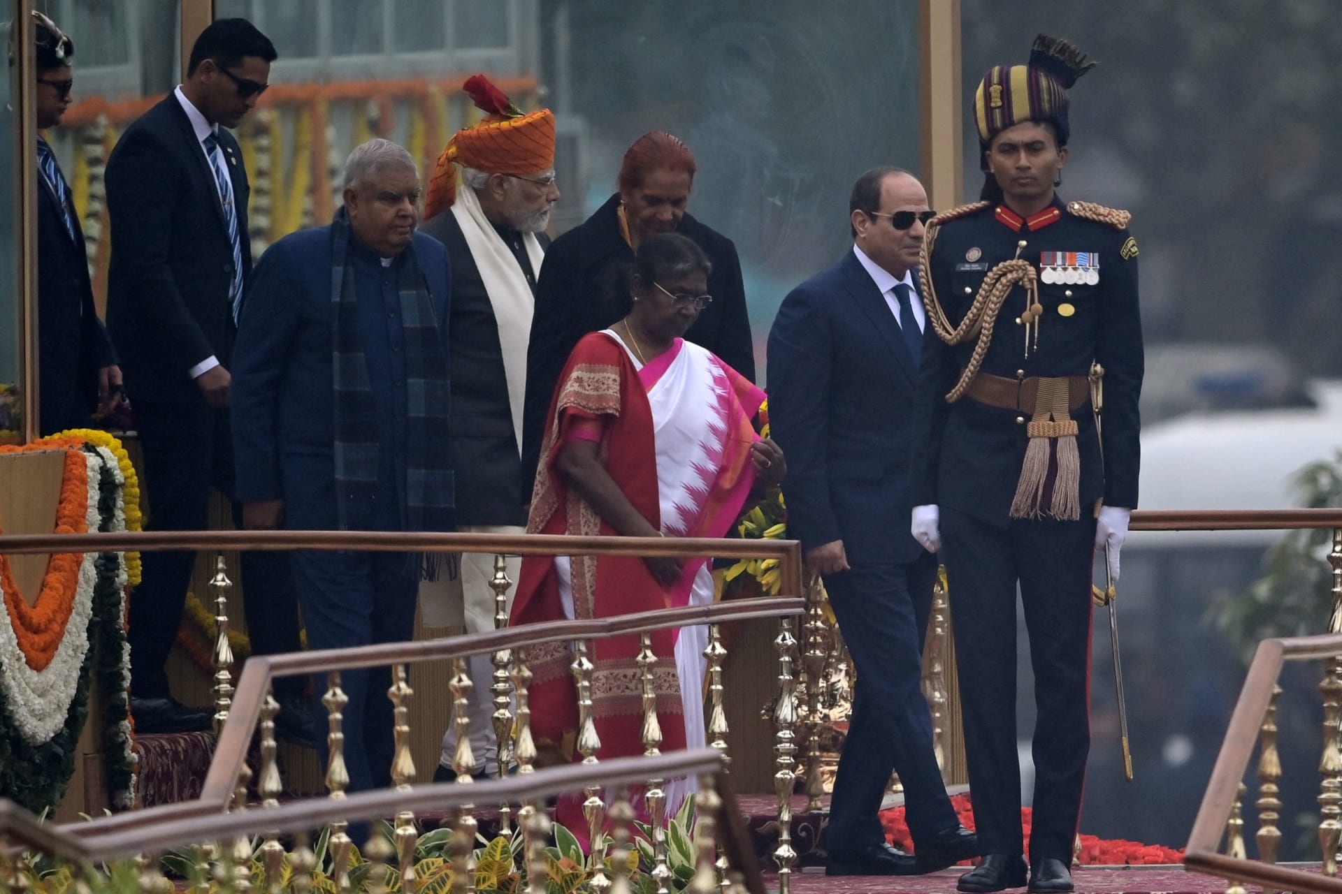 وفي عام 2023م، شارك عبد الفتاح السيسي، رئيس جمهورية مصر العربية، ضيفَ الشرف في الاحتفالات بيوم الجمهورية، وذلك خلال فترة رئاسة دروبادى مورمو. (وكالات)