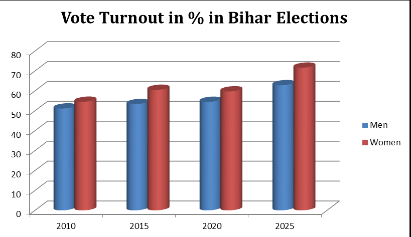 ويرى محللون أن تجدد التفويض الشعبي لنيتـيش كومار يعود إلى نجاحه في بناء تحالف اجتماعي معقد ومتين، شمل الطبقات الهامشية المهمشة فضلاً عن قاعدة واسعة من النساء حافظ عليها لأكثر من عقدين. وبذلك، يواصل كومار موقعه كعنصر حاسم في سياسة بيهار، بغضّ النظر عن موقع حزبه في ترتيب الفائزين كما حدث في انتخابات 2010م و2015م و2020م.