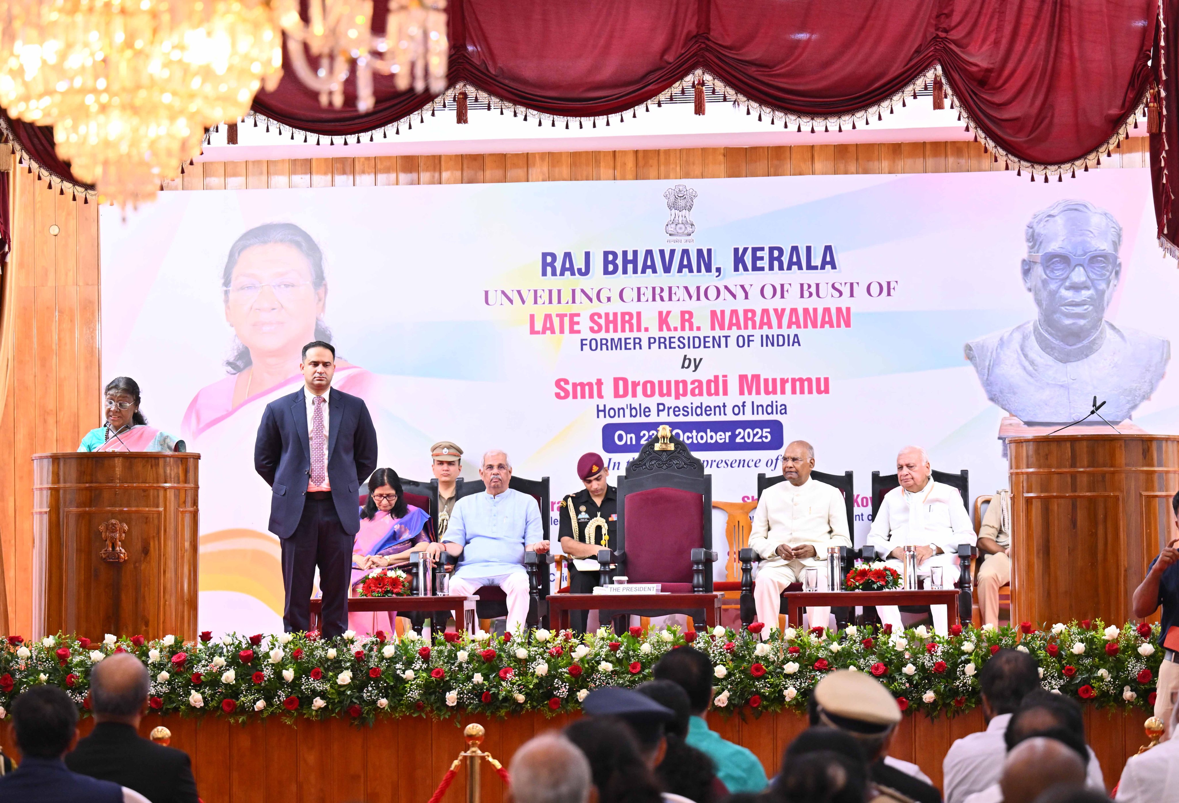 أزاحت رئيسة الجمهورية، دروبادي مورمو، اليوم الخميس، الستار عن تمثال نصفي للرئيس الهندي الأسبق كيه. آر. نارايانان في "راج بهافان" بمدينة ثيروفانانثابورام، وذلك بحضور الرئيس الأسبق رام ناث كوفيند، وحاكم ولاية كيرالا راجيندرا فيشناث أرليكار، وحاكم ولاية بيهار عارف محمد خان، وعدد من كبار الشخصيات.