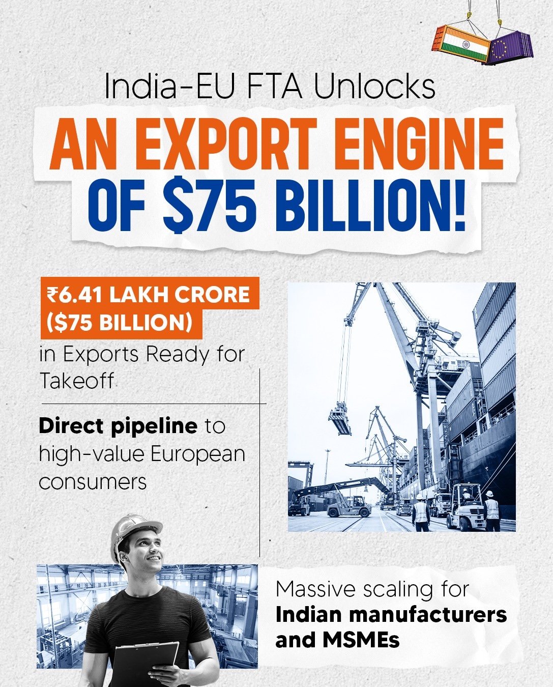 وتحمل هذه التطورات آثارًا عميقة على سوق العمل. فهذه القطاعات تعتمد بكثافة على الأيدي العاملة وتتوزّع عبر مناطق مختلفة، ما يجعل مكاسب نموّ الصادرات ممتدّة إلى ما وراء المدن الكبرى. ومع تزايد الطلبيات، سيرتفع الطلب على العمالة الماهرة وشبه الماهرة، إلى جانب خدمات النقل واللوجستيات والتغليف والأنشطة المرتبطة بها. ومن شأن اتفاقية التجارة الحرة أن تخلق ملايين فرص العمل وتدعم الصناعة الهندية من القاعدة إلى الأعلى، على أسس أكثر متانة واستدامة.