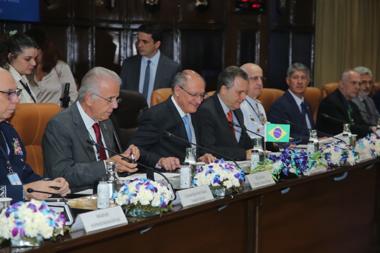 عقد وزير الدفاع الهندي راجناث سينغ مساء الأربعاء اجتماعًا ثنائيًا في نيودلهي مع نائب الرئيس البرازيلي جيرالدو ألكمين ووزير الدفاع البرازيلي جوزيه موسيو مونتيرو فيلهو، مؤكدًا على تنامي الشراكة الدفاعية والأمنية بين البلدين.